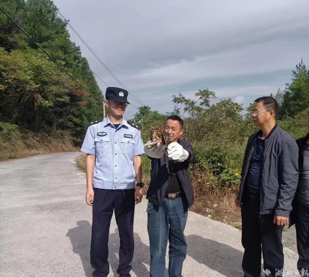 湖北日报讯(利川频道通讯员牟联祥)9月6日上午,随着翅膀展开“扑棱”的飞翔声响起,利川市公安局凉雾派出所民警联合林业部门工作人员,成功将一只受伤救治后的国家二级保护动物“松雀鹰”放归山林。