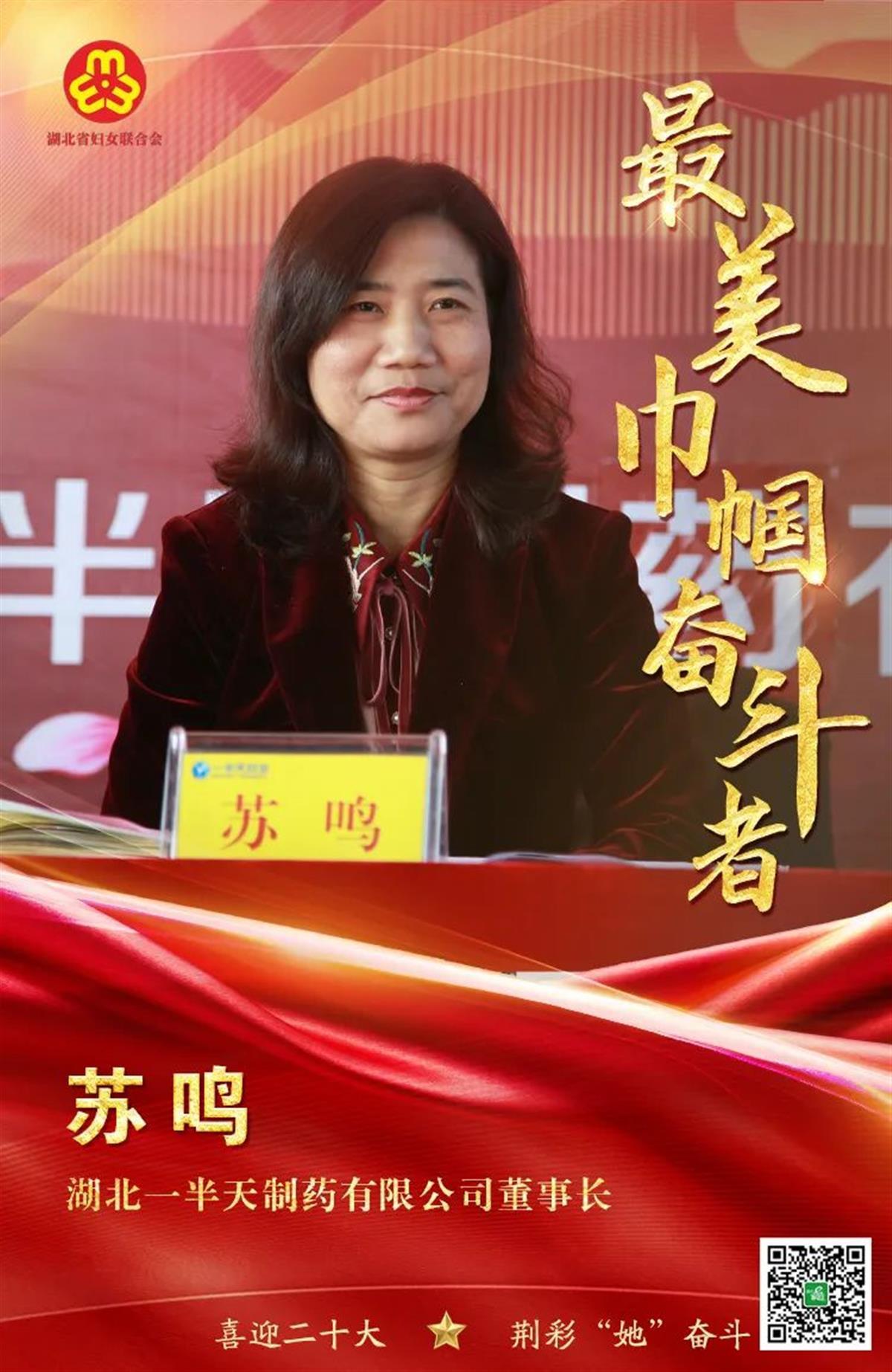 苏鸣,湖北省第十一、十二、十三届人大代表,2006年毕业于华中科技大学管理学院,工商管理硕士,现任湖北一半天制药有限公司董事长。