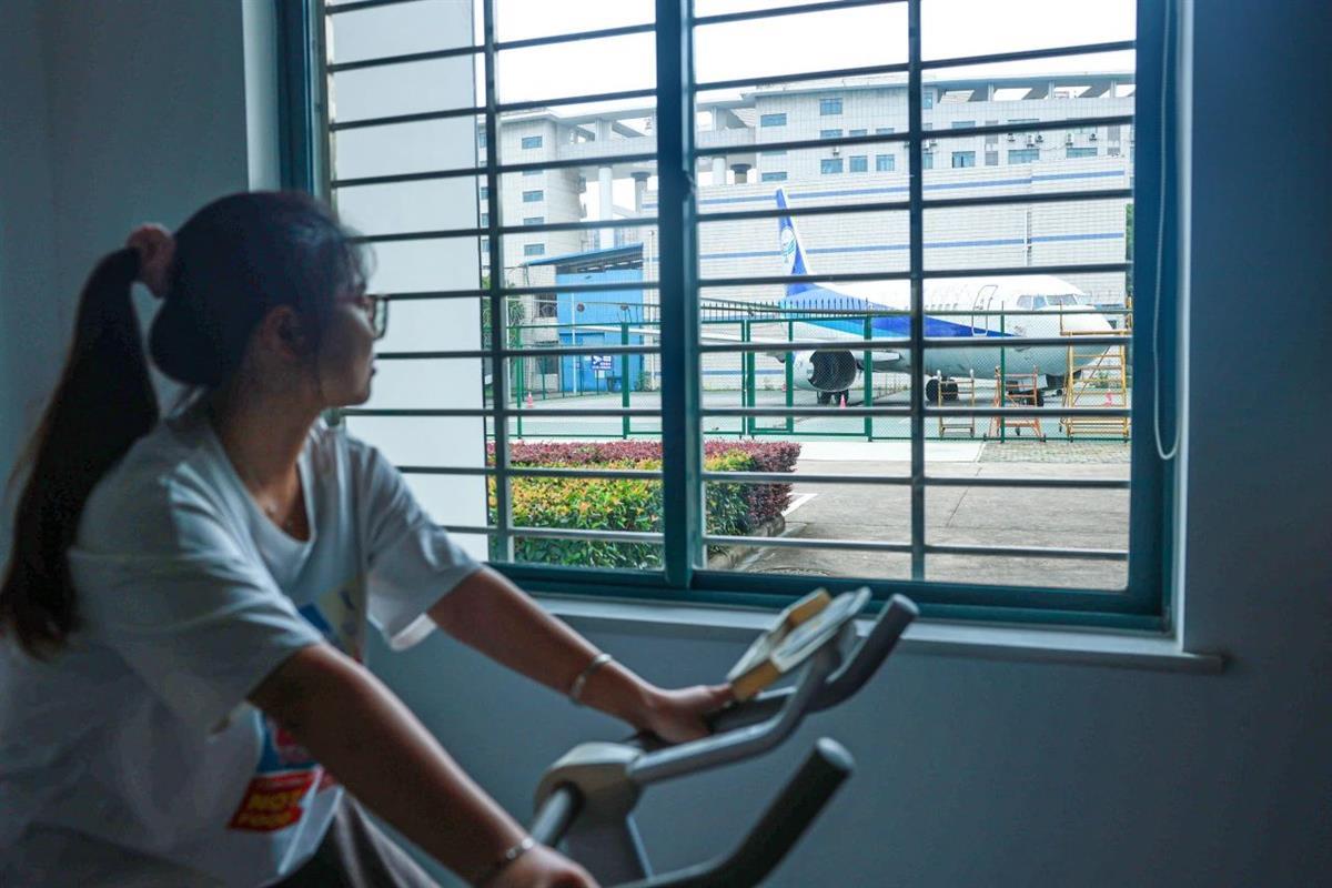 工作人员表示,“鄂州人才之家”窗外的学校操场上还停靠展示着一架飞机,这是该校航空工程学院的教学设备,该飞机承担着鄂州职业大学航空类相关专业教学、实训和科研等任务。