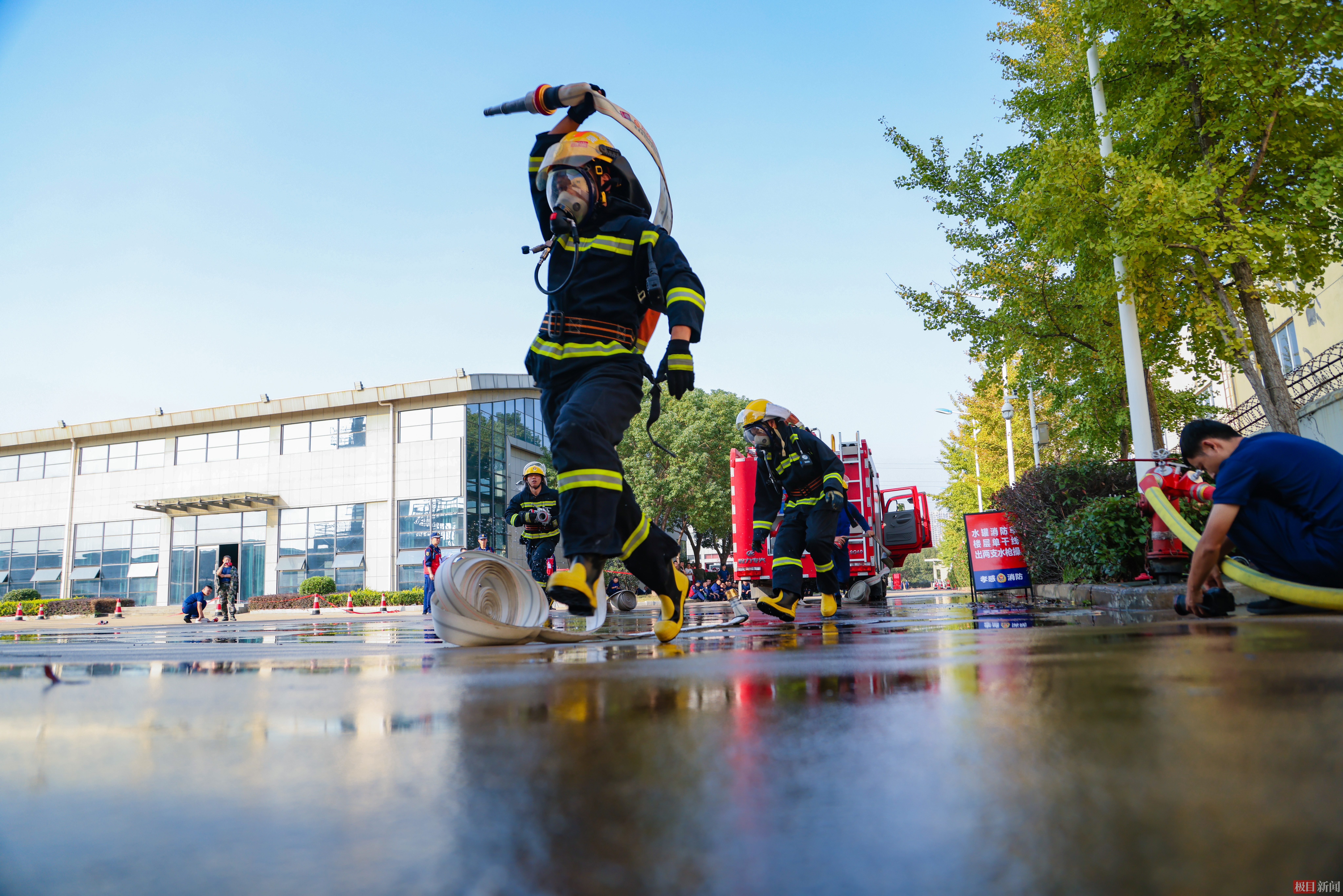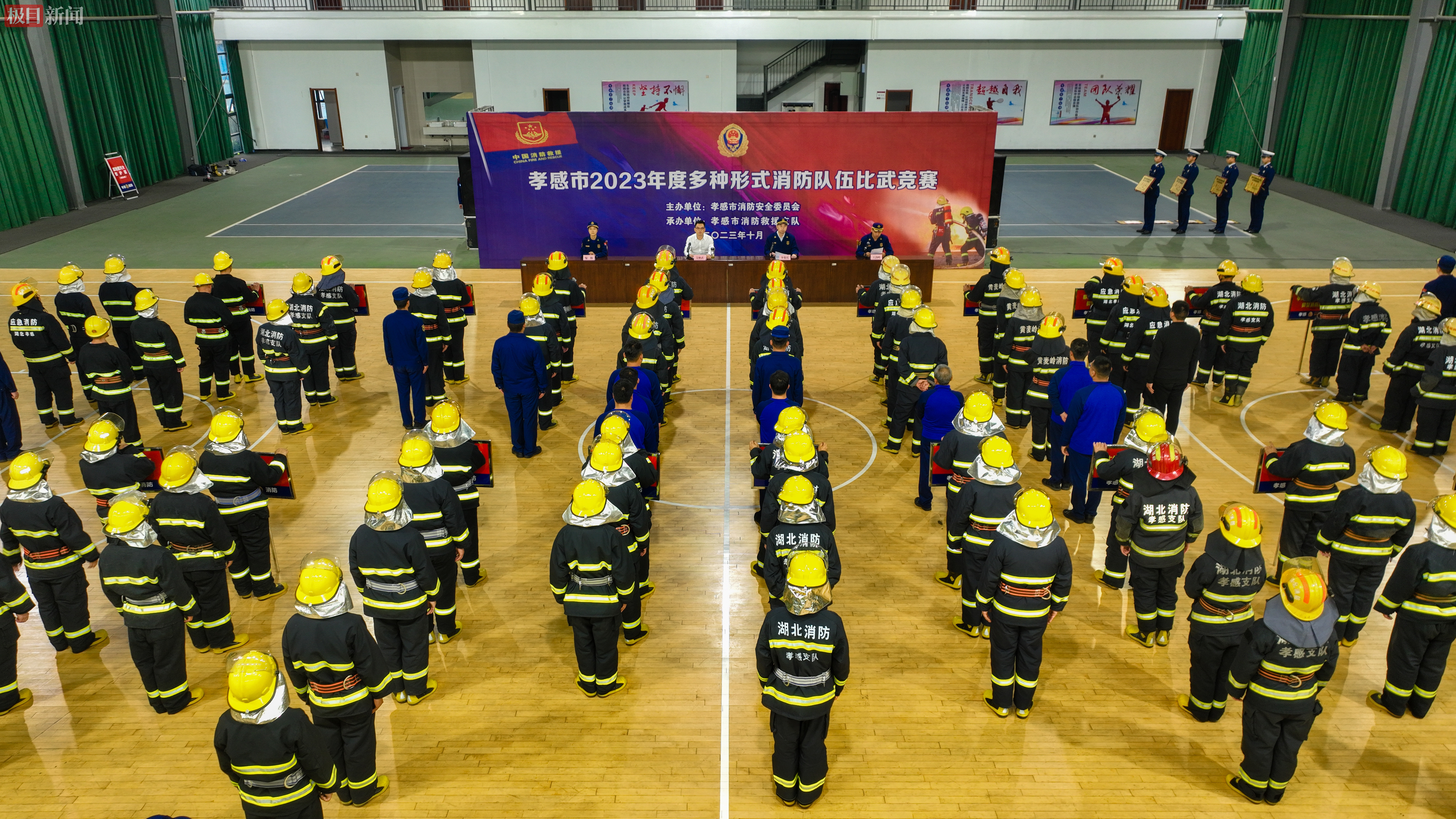 10月31日,湖北孝感市举行2023年度多种形式消防队伍比武竞赛,来自该市7支乡镇专职消防队、16支社区微型消防站,共100余名队员同场竞技,在竞赛中交流经验、在对抗中提升能力。