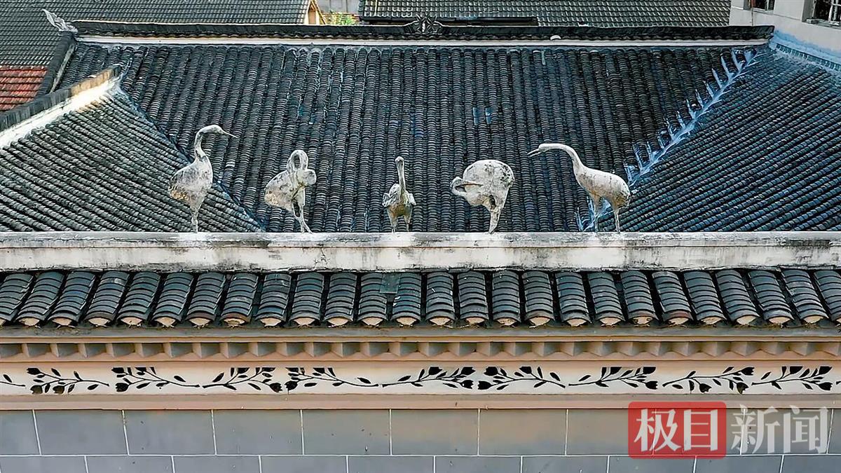 五只仙鹤雕塑立于松鹤堂屋顶(通讯员供图)