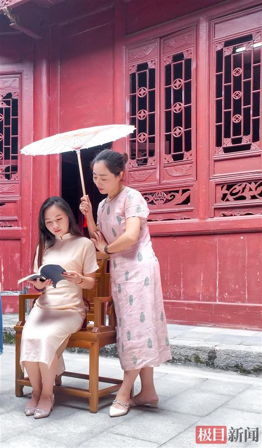 游客身着传统服饰,在松鹤堂打卡拍照(通讯员樊孝银摄)