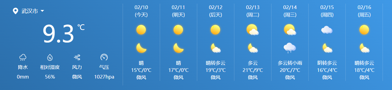 来源:武汉中心气象台2024年2月10日06时预报