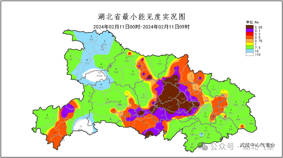 昨天(10日),湖北省晴天,42个县(市、区)出现大雾或浓雾,主要位于中东部和恩施西部,同时中东部地区有中到重度霾。最高气温大部地区12~22℃,20℃以上的县市集中在宜昌地区。