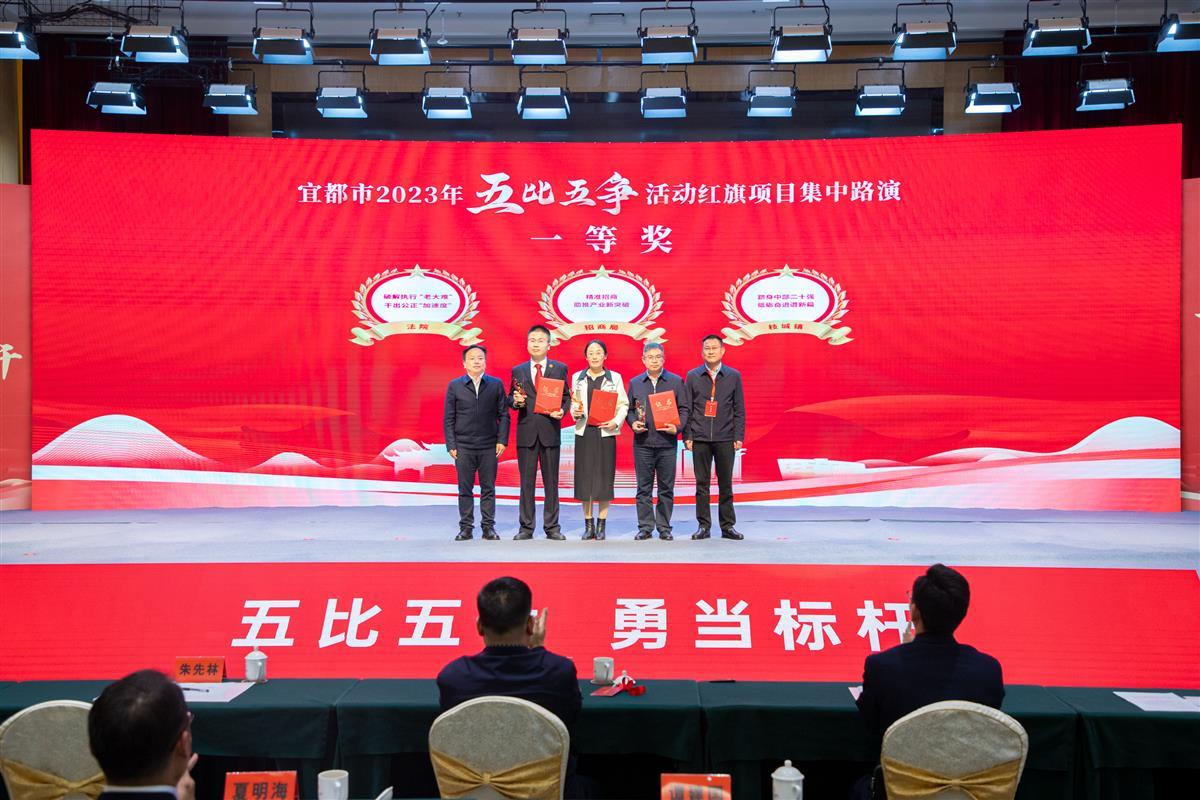 为推动“五比五争”活动走深走实,宜都市自2023年启动“五比五争”红旗项目集中路演活动,让先进走向前台,现场分享成功经验,凝聚更大奋进力量。334个夺旗项目比实事、晒业绩、创佳绩,进一步升腾了发展大气场,迸发出发展大能量。