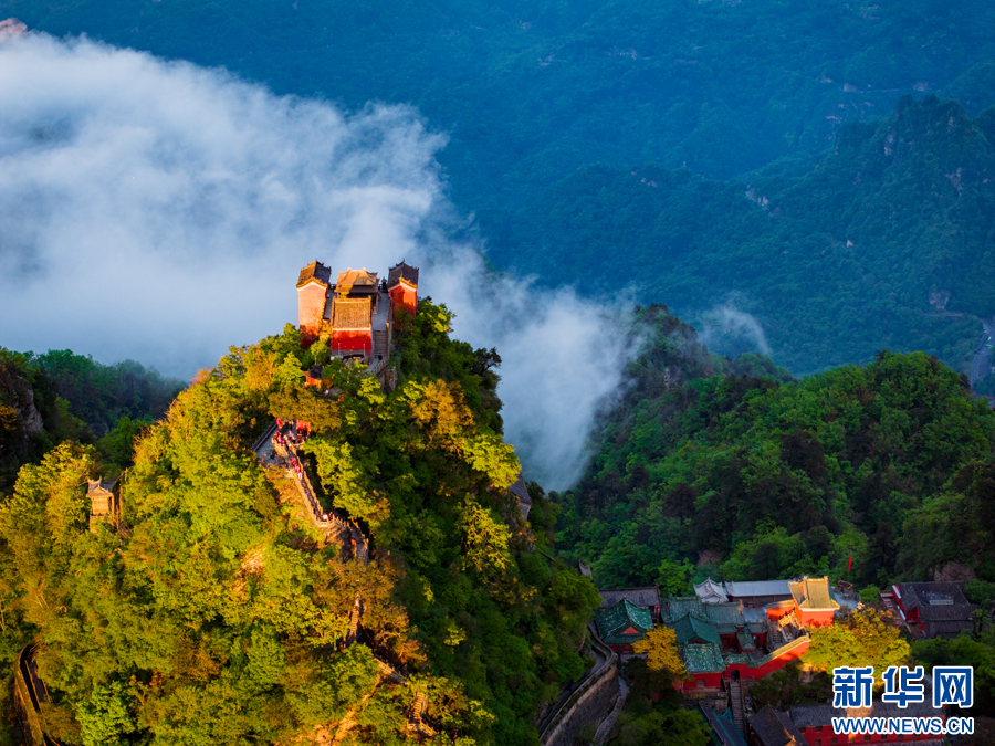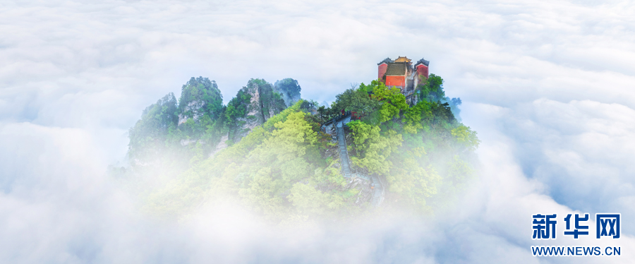 五月的武当山,云雾升腾,浩瀚无垠,灵性的古建筑若隐若现,如同水墨画卷,胜似仙山琼阁,气势磅礴,蔚为壮观,给游客带来无限遐想与向往。(朱思友)