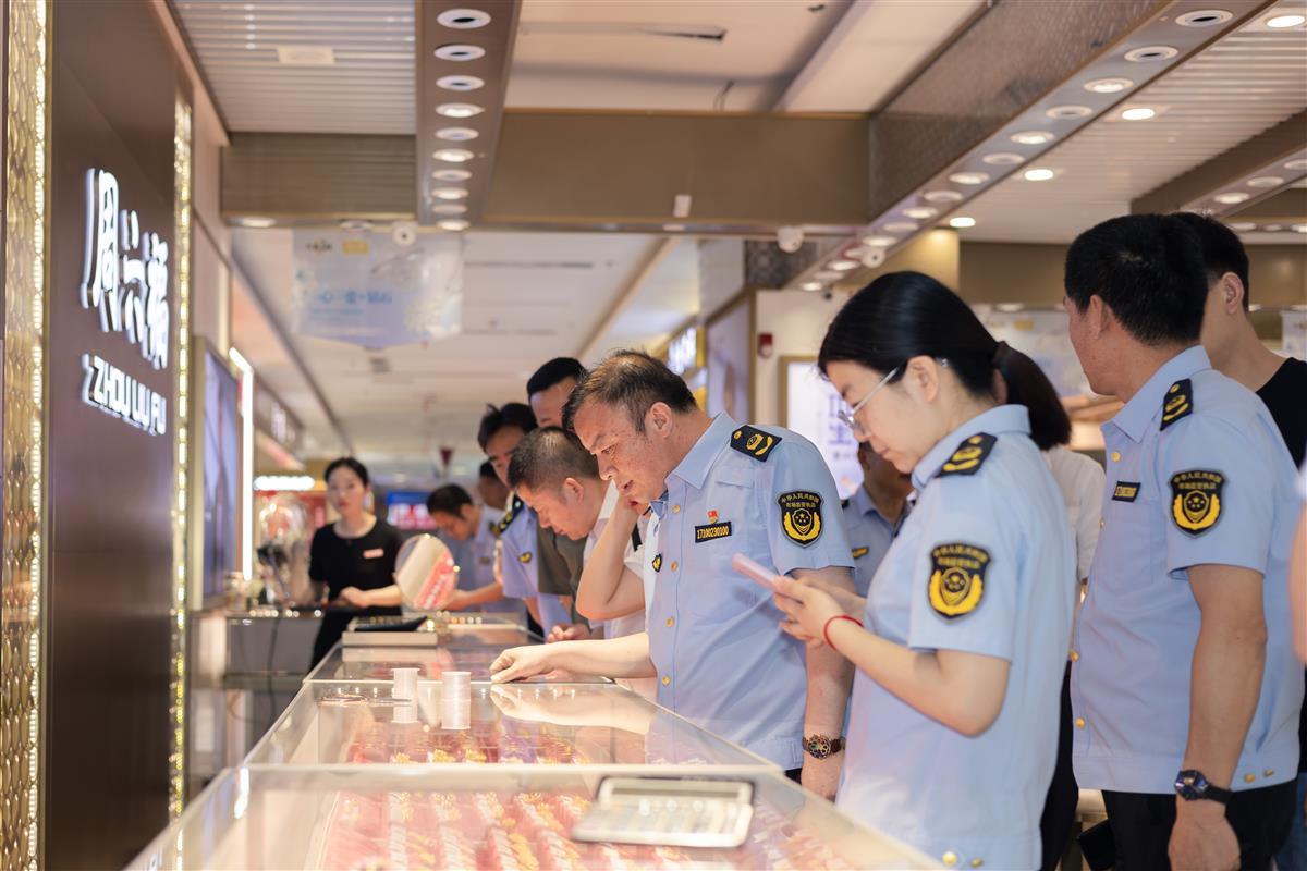 活动现场,市场监管执法人员检查了金银首饰店是否配备符合要求的计量器具,是否存在使用改装、不合格或故意破坏计量器具准确度等行为,并向商家和消费者宣传相关法律法规、讲解选购黄金饰品时应注意的事项,对临近有效期的电子天平进行现场检定。