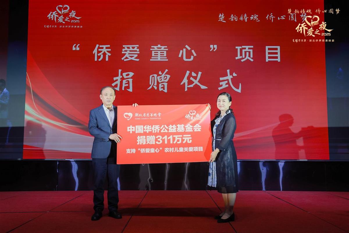 慈善晚宴上,为凝聚湖北侨界爱心力量,帮扶湖北农村儿童,湖北省侨联与湖北省慈善总会共同发起实施“侨爱童心”农村儿童关爱项目,联动湖北各市州县侨联开展教育助学、大病救助、心理问题干预等农村儿童关爱帮扶活动,中国侨基会、柏斯音乐集团、亚心集团成为“侨爱童心”项目首批捐赠单位。
