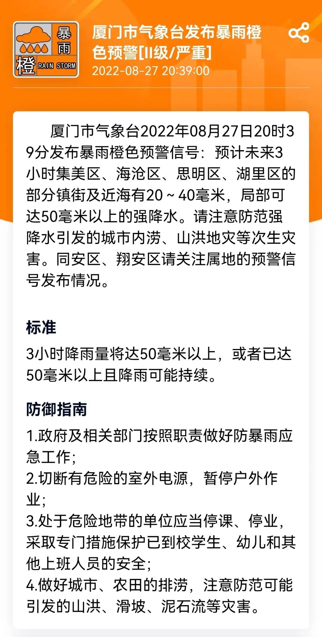 暴雨橙色预警信号