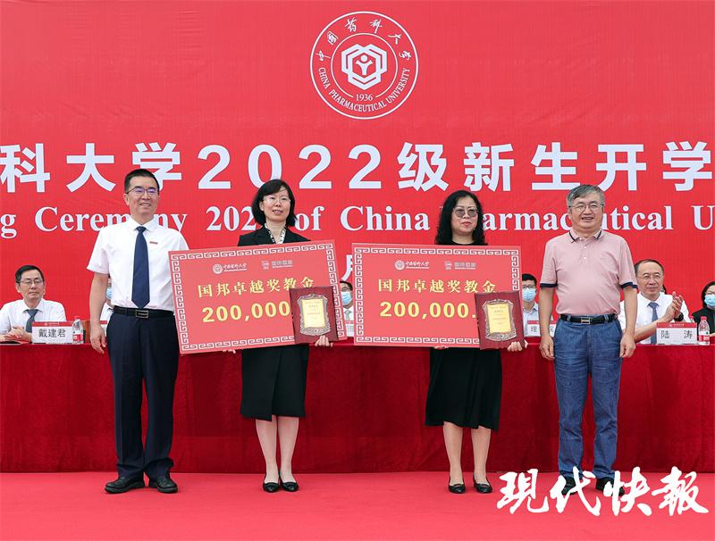 现代快报讯9月13日,教师节和中秋节假期后的第一天,中国药科大学举行2022级新生开学典礼。现场,该校为两名躬耕教学一线的教师,分别颁发了20万元奖教金,全场沸腾。这让5505名小萌新体会到了学校对教师的尊敬与关爱,也激励教师潜心科研,用自身所学服务社会。