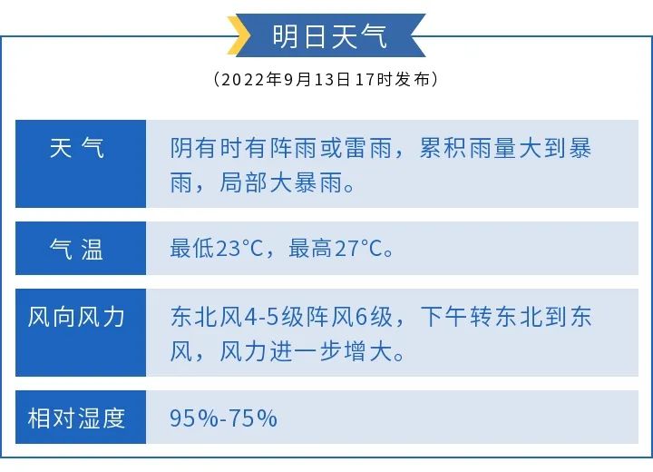 气温:明后天温差较小,全天气温在23~27度之间。相对湿度95%~75%,湿度大、气压低,体感闷湿。