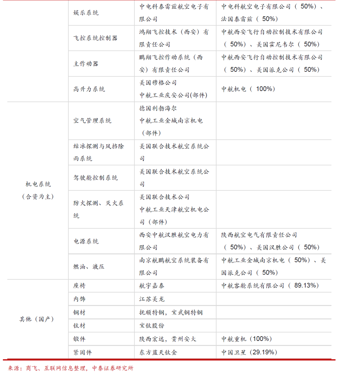 而零部件供应则采取全球招标的形式,通用、联合技术公司、霍尼韦尔公司等一批欧美顶级航空制造企业以及中航工业旗下很多专业制造公司,都是飞机零部件的重要供应商。