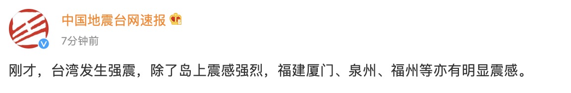 台湾发生强震,福建厦门、泉州、福州等地有明显震感