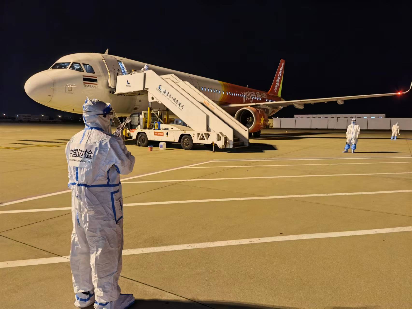 现代快报讯(通讯员宁边新记者季雨)停航26个月后,南京至泰国航线恢复。9月21日晚8点多,由泰国曼谷起飞的VZ3526次航班安全抵达南京禄口国际机场,南京出入境边防检查站高效完成了此次航班的入境边防检查工作。
