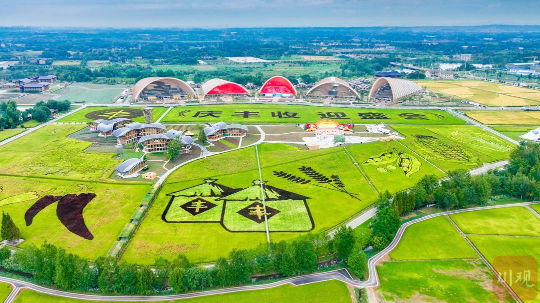 9月22日,位于成都新津的中国天府农业博览园(以下简称“天府农博园”)内,“庆丰收迎盛会”六个大字在稻浪中熠熠生辉。从空中俯瞰,“五谷丰登”“六畜兴旺”的巨幅稻田画栩栩如生。