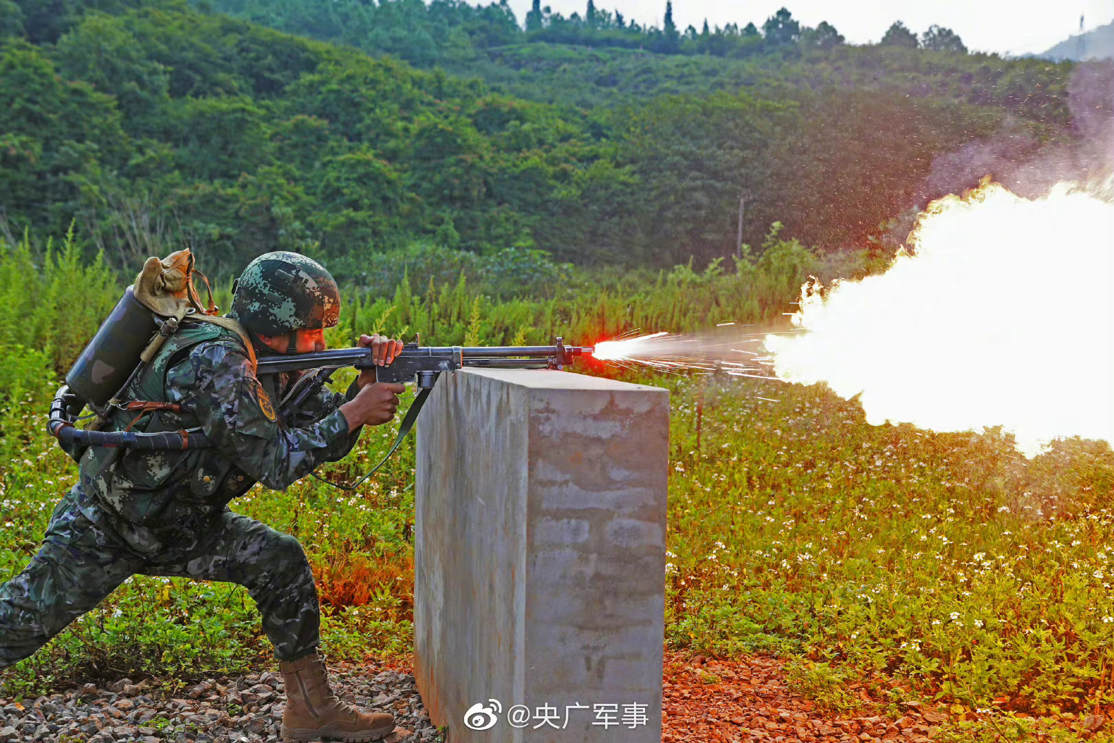 近日,武警第二机动总队某支队在某野外训练场,组织官兵使用手枪、自动步枪、高精度狙击步枪、喷火器、迫击炮等多种武器进行实弹训练,检验部队作战能力。戳↓↓感受现场火力!(杨军)
