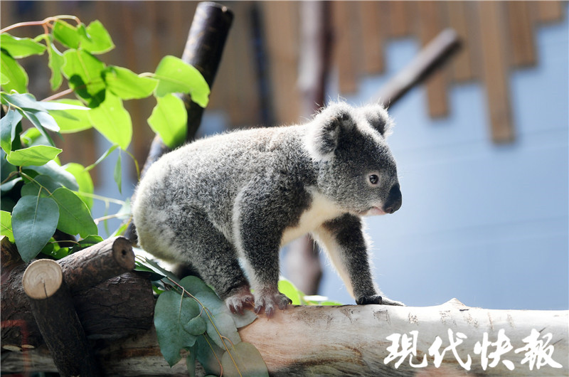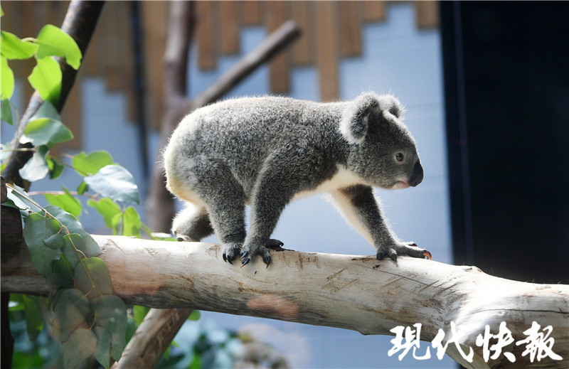当天上午,现代快报记者在南京红山森林动物园考拉馆里看到,考拉四宝比刚出袋时长大了不少,它不再时时刻刻挂在妈妈身上,已经学会了独自在栖架上攀爬。当天在考拉馆,园方现场公布了考拉四宝的名字——“橙子”。