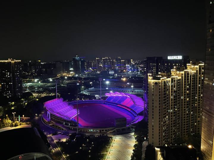 “这两天一到晚上,上城体育中心不时地变化颜色,五彩斑斓,格外亮丽,像一盏花灯似的。”