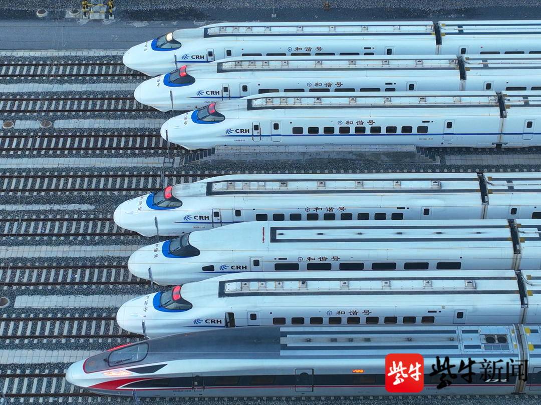 南通动车所停车线上,一列列动车组列车整装待发(许丛军摄)