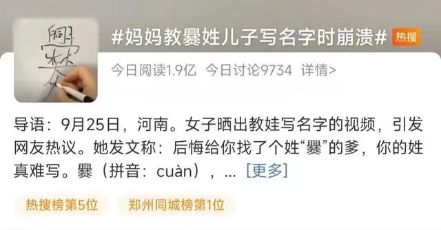 话题#妈妈教爨姓儿子写名字时崩溃#