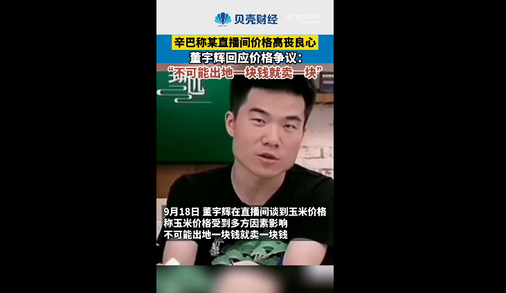 遭辛巴炮轰“丧良心”,董宇辉解释玉米贵