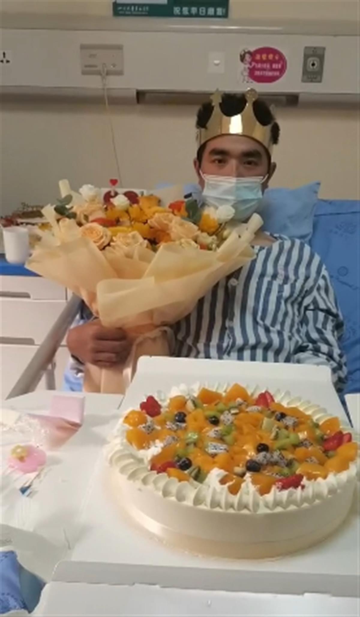 甘宇在病房过生日(网络视频截图)