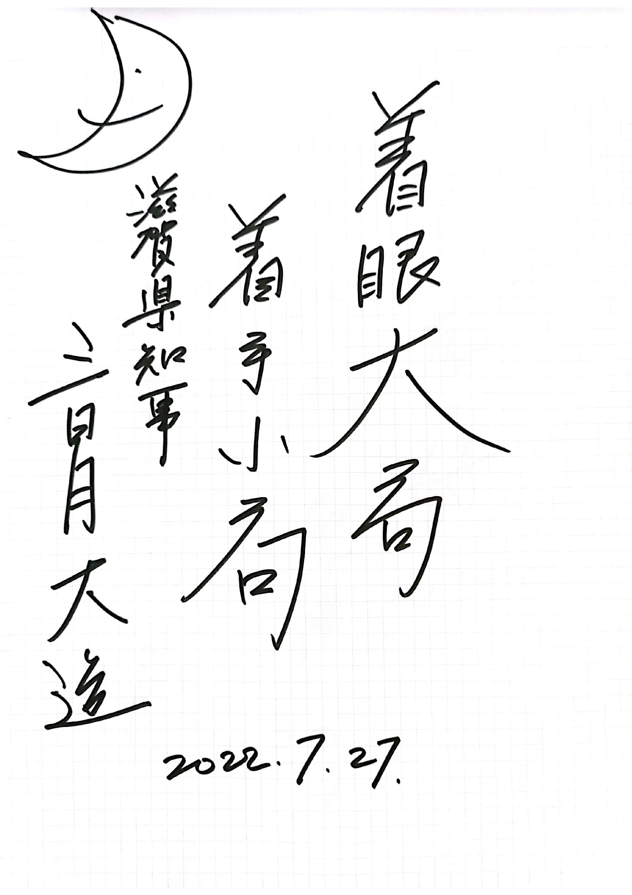 日本滋贺县知事三日月大造:着眼大局,着手小局。