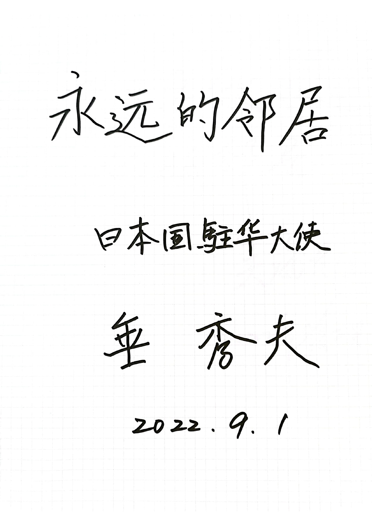 日本驻中国大使垂秀夫:永远的邻居。