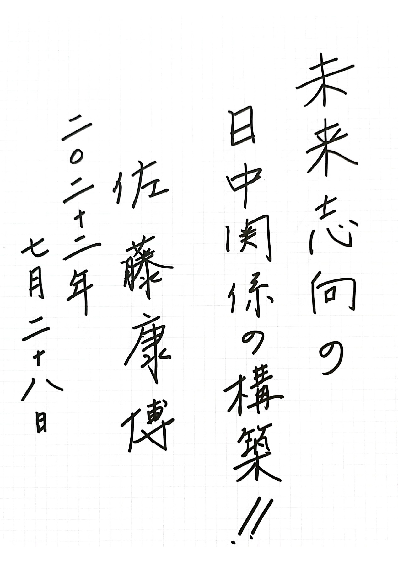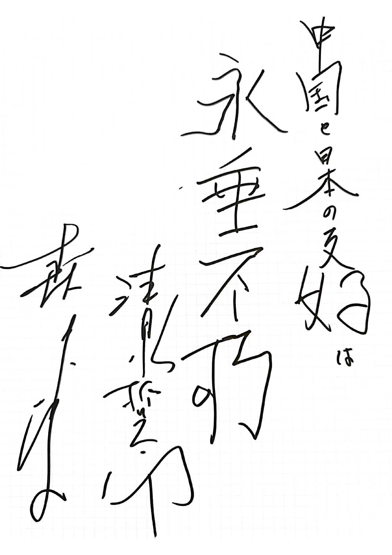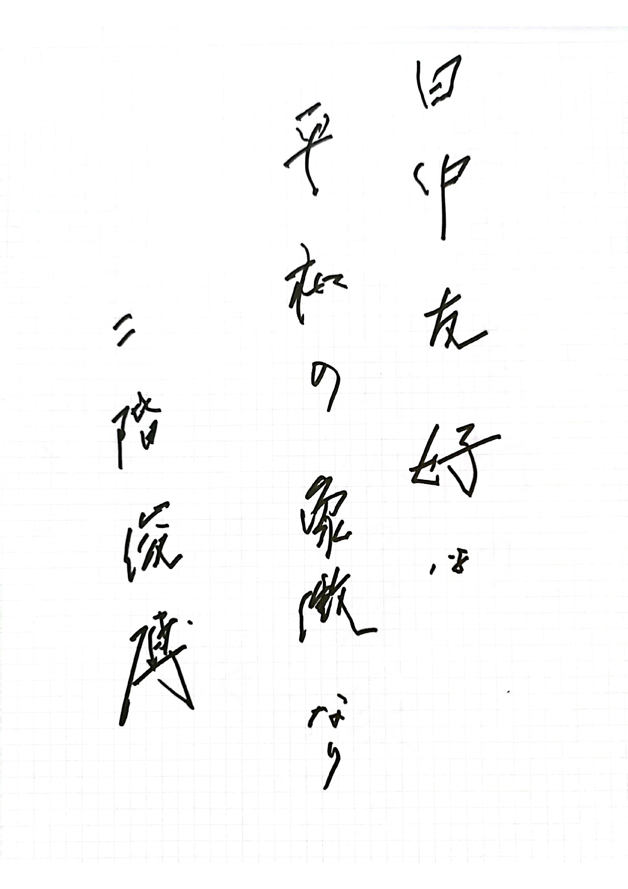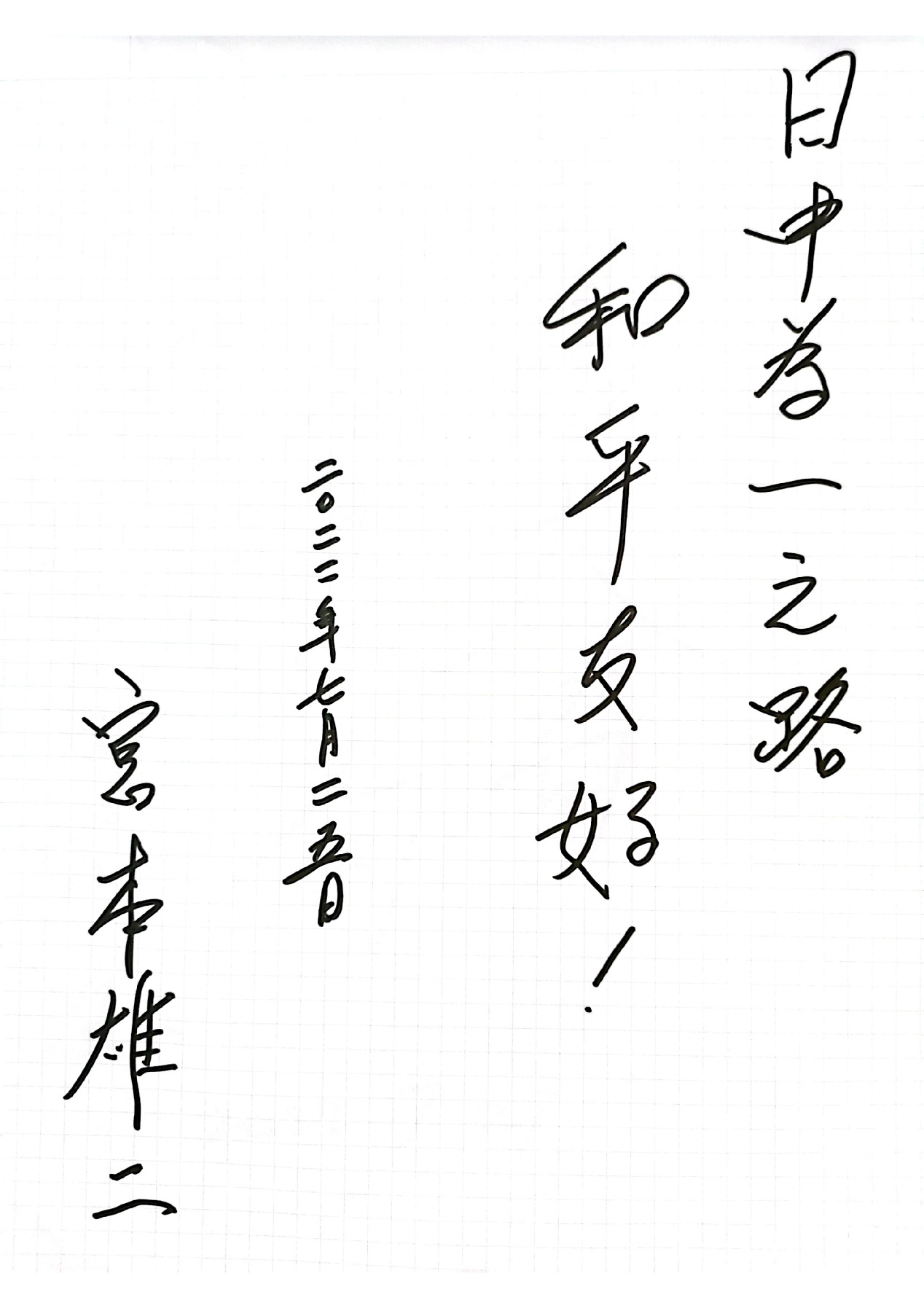 日本自民党前干事长二阶俊博:日中友好是和平的象征。