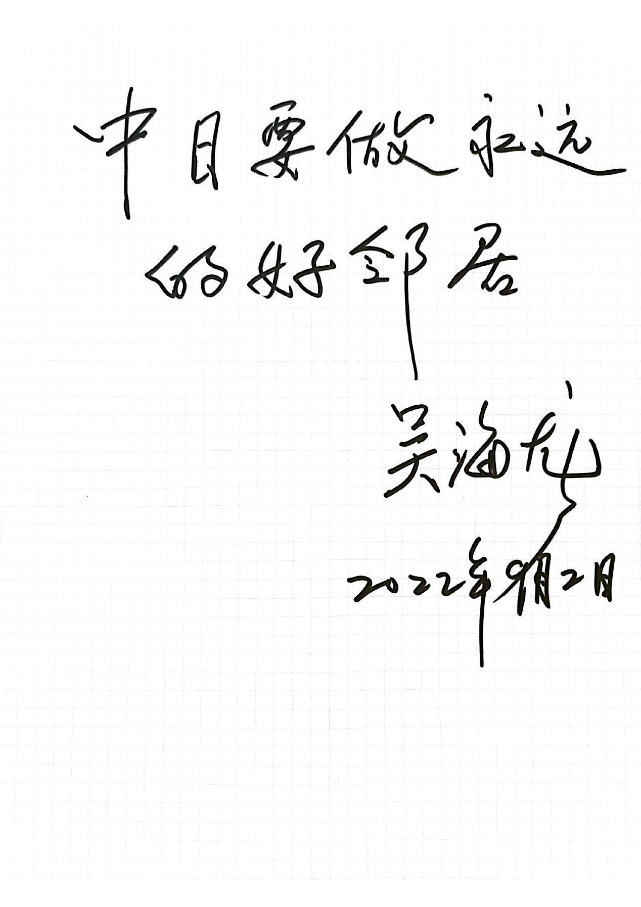 中国公共外交协会会长吴海龙:中日要做永远的好邻居。
