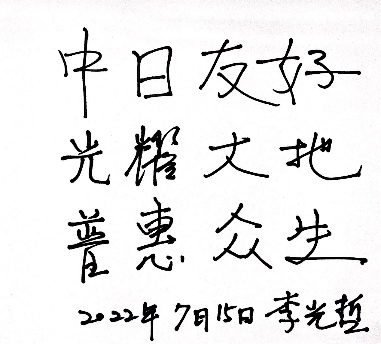 中国赴日留学生、光普能源控股集团总裁李光哲:中日友好,光耀大地,普惠众生。