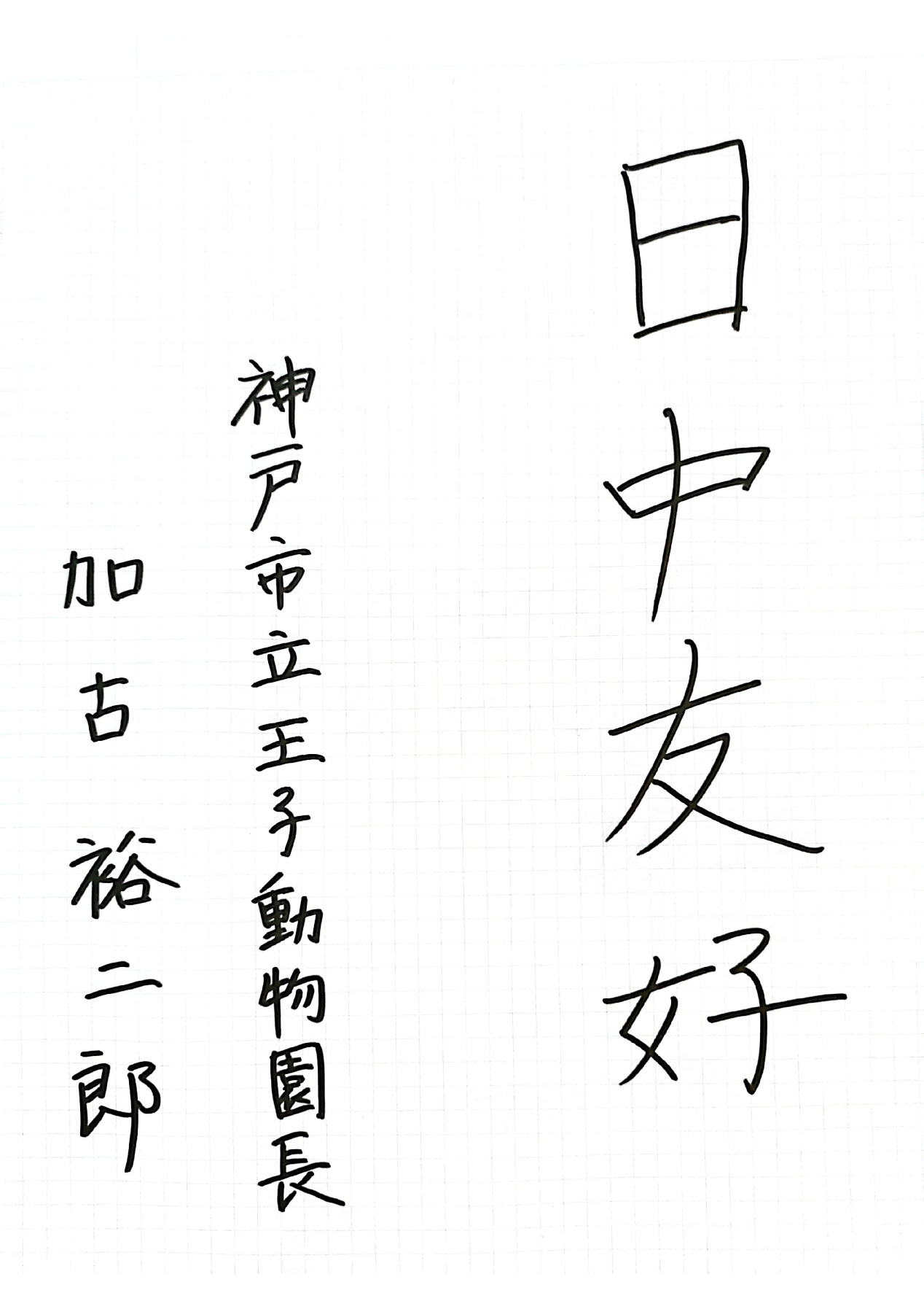 日本神户市立王子动物园长加古裕二郎:日中友好。