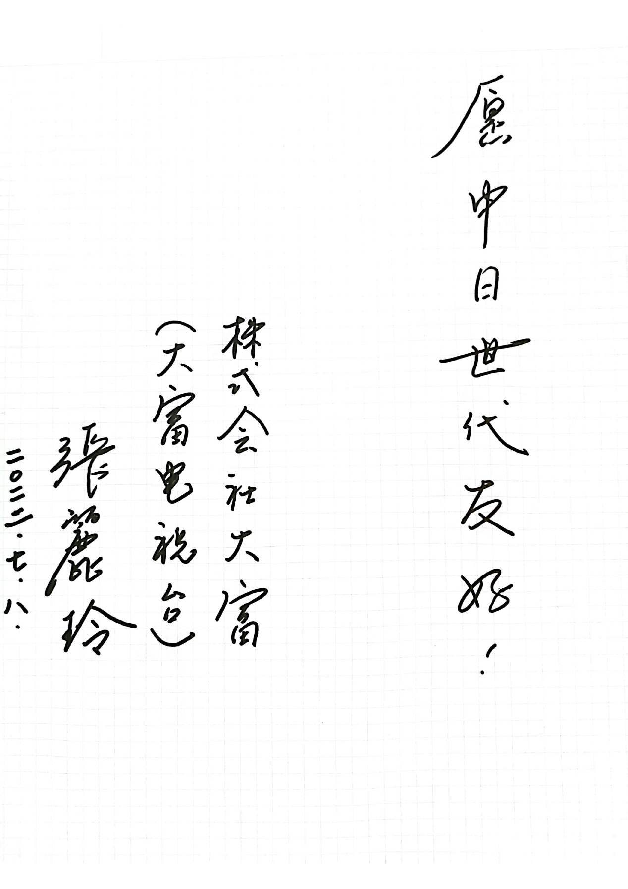 株式会社大富董事长兼社长张丽玲:愿中日世代友好!