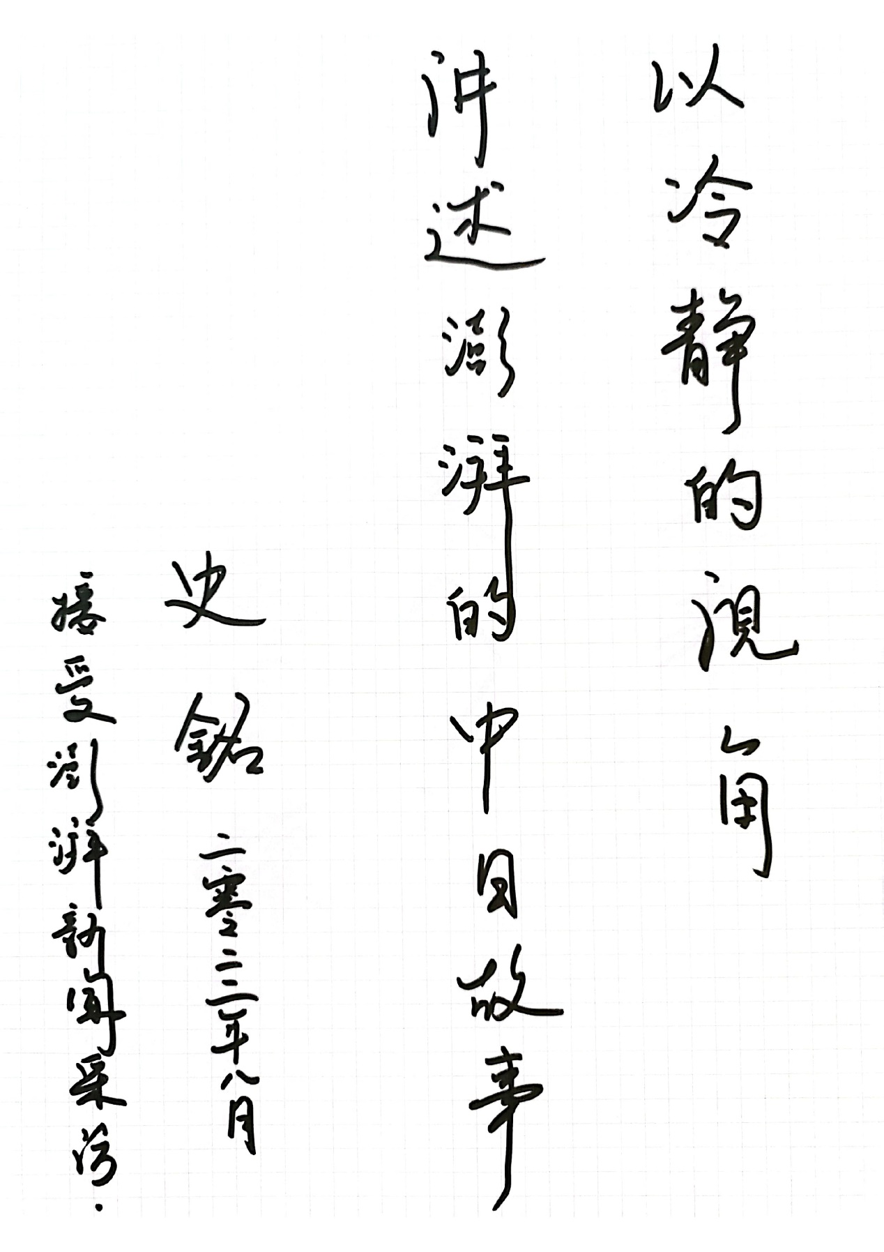 作为中日50年冷暖的参与者,系列采访中的每一位都感触良多,他们各自把复杂的情绪化作一句寄语,提笔写在了记录簿里。
