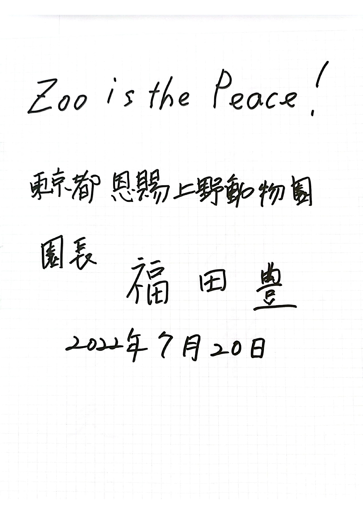 日本东京都恩赐上野动物园园长福田丰:动物园是和平。