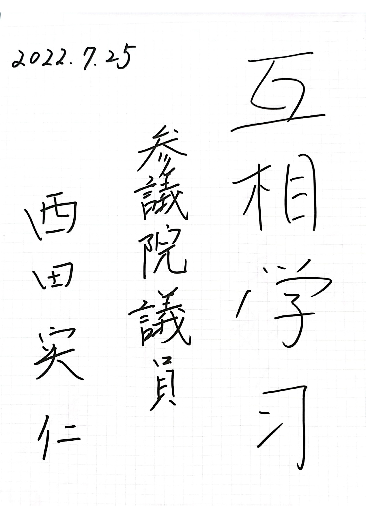 日本赴华留学生、公明党参议院议员西田实仁:互相学习。