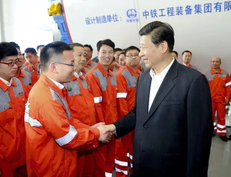 2014年5月10日,习近平总书记视察中国中铁装备集团,作出“三个转变”的重要指示。(央广网发中国中铁供图)