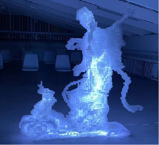 使用颗粒方组成的作品《嫦娥奔月》。图/北京大学艺术学院