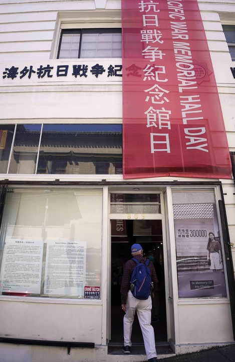 8月20日,在美国旧金山,一名男子进入海外抗日战争纪念馆参观。新华社记者吴晓凌摄