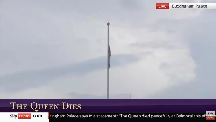 BBC称,当地时间9月8日下午6点30分,英国白金汉宫降半旗致哀。