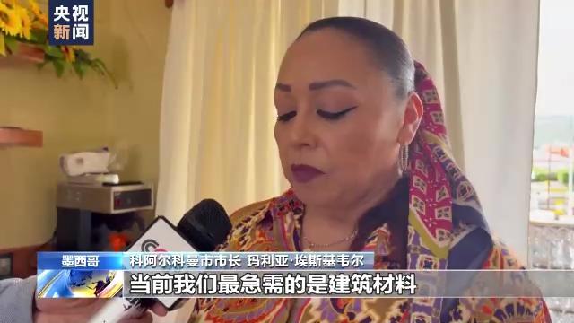 墨西哥科阿尔科曼市市长 玛利亚·埃斯基韦尔:当前我们最急需的是建筑材料,包括各种板材、水泥、砂浆、涂料。这些材料可以极大地帮助在地震中房屋受损的家庭进行重建。