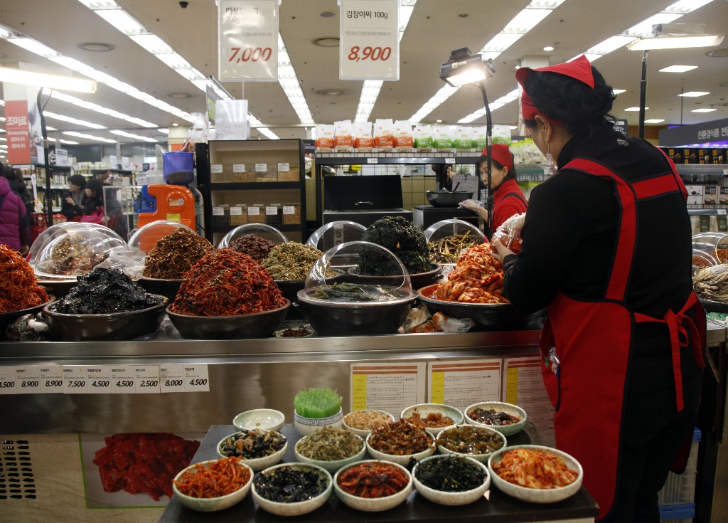 2015年12月20日,在韩国首尔一家大型超市,店员在推销韩国泡菜。新华社记者姚琪琳摄