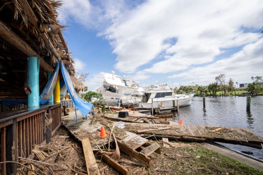 9月29日,美国佛罗里达州西南沿海的迈尔斯堡一处码头遭到飓风“伊恩”破坏。新华社发(罗兰多·洛佩斯摄)