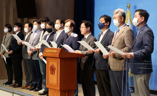 3日上午,共同民主党方面就调查文在寅一事召开记者会。 图自韩媒