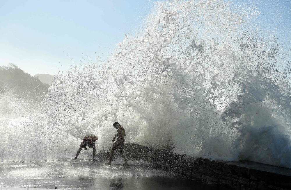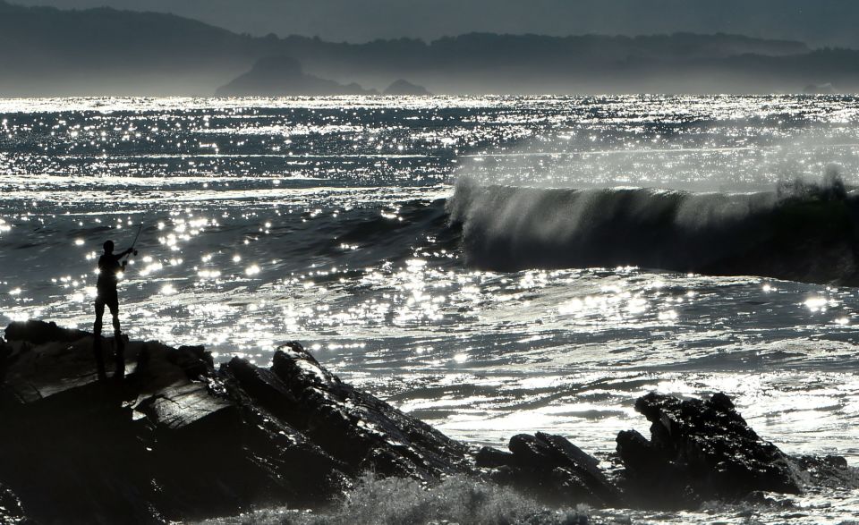 9月28日,一名男子在法国南部盖塔里的海滩钓鱼。新华社/法新