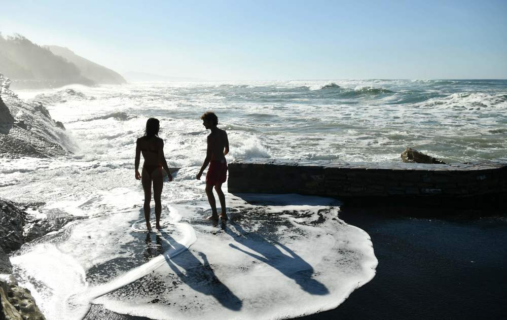 9月28日,一对情侣在法国南部盖塔里的海滩晒太阳。新华社/法新