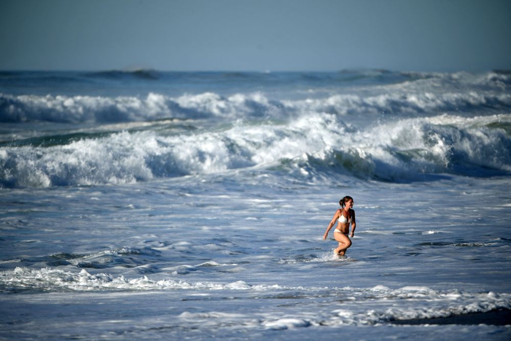 9月28日,一名女子在法国南部盖塔里的海滩游泳。新华社/法新
