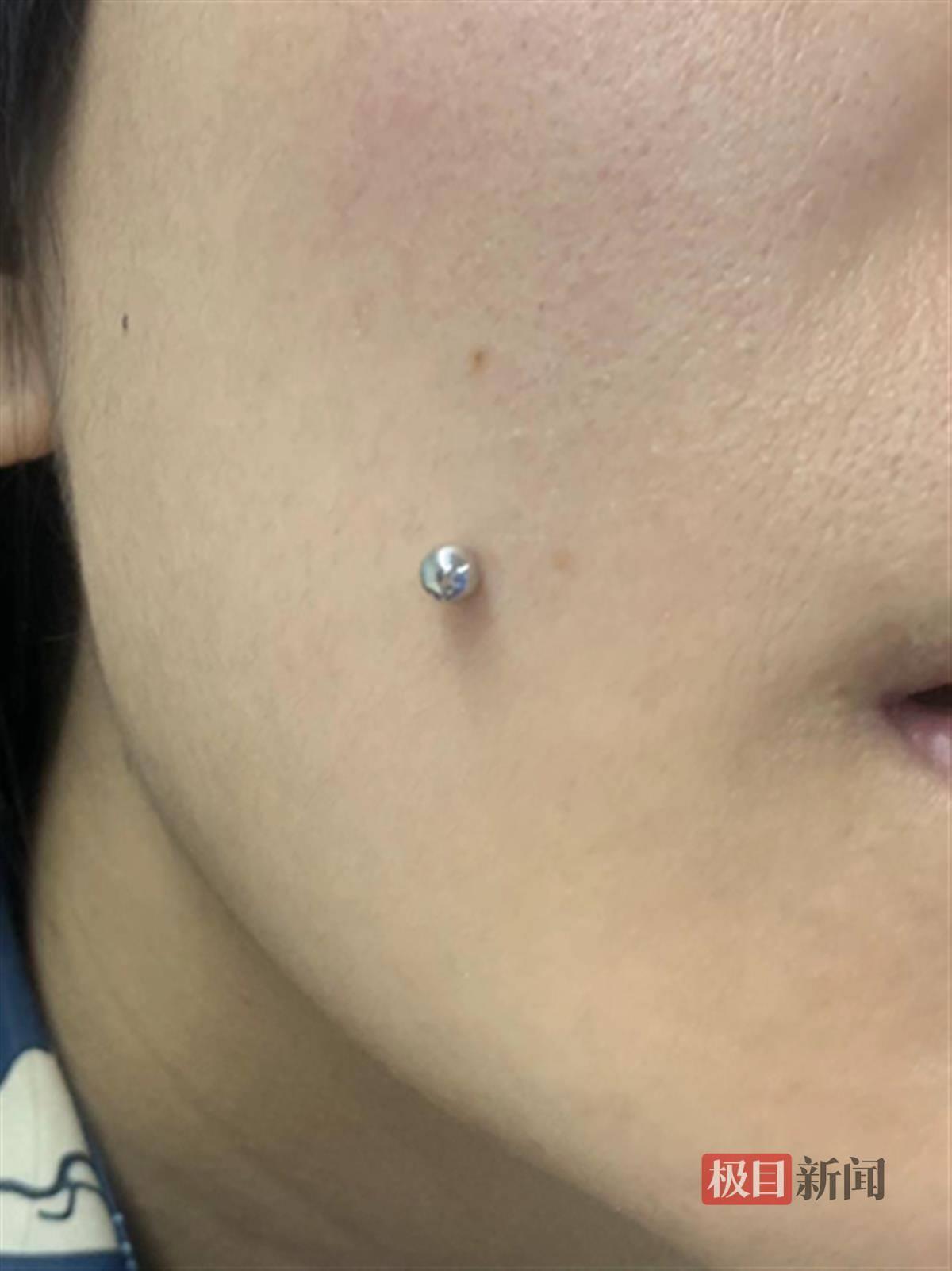 不久前,武汉一爱美女子追求个性时尚,在两侧脸颊各打入一颗“酒窝钉”,谁知两周后钉子嵌入脸颊内取出困难,不得不到医院求助,才最终取出了钉子。(据极目新闻8月12日报道)
