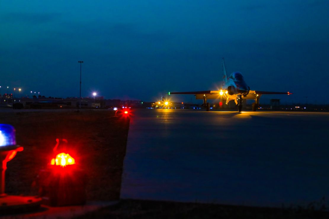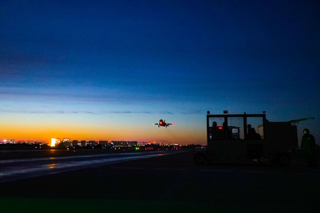 深夜,随着最后一架战机平稳降落在跑道上,期班学员圆满完成首次夜航单飞,所有飞行学员均完成预定课目训练。(蓝鹏飞晏辉明)