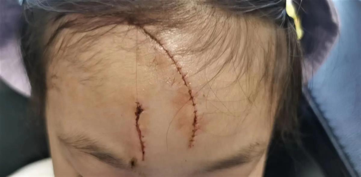 女孩头上的伤痕清晰可见(来源:华商报)